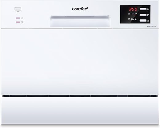 Kompaktowa zmywarka wolnostojąca COMFEE’ TD602E-W, wyświetlacz LED, 6,5 litra, biała, poziom hałasu: 47 dB