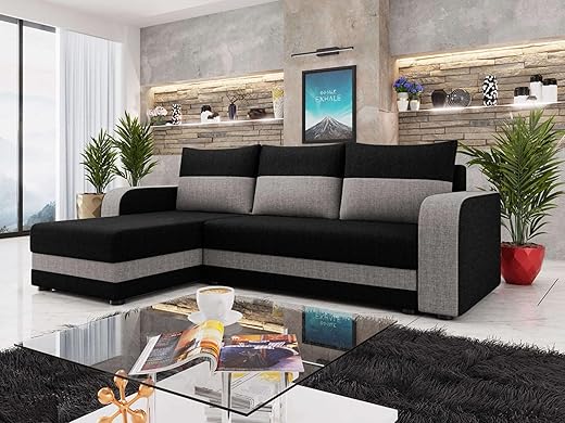 Best Mobilier – Regala – sofa panoramiczna – 7 miejsc – rozkładana z pojemnikiem – z tkaniny – czarna
