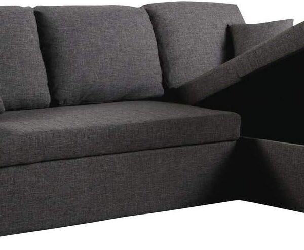 Dom i ogród – Narożnik rozkładany i odwracalny Alain 3-osobowy szary – Nowoczesna sofa rozkładana z tkaniny lnianej – Schowek (leżanka) – Design