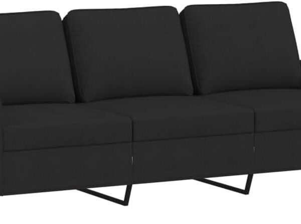 vidaXL 3-osobowa sofa, siedzisko z podłokietnikami i wyściełanym oparciem, sofa z poduszkami, mebel do salonu, nowoczesna, czarna tkanina