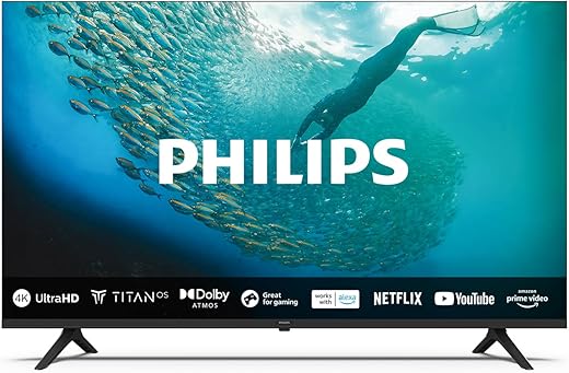 Philips 65PUS7009 Smart TV LED 4K – ekran 65 cali z platformą Pixel Precise Ultra HD Titan OS i dźwiękiem Dolby Atmos, współpracuje z Alexą i Asystentem Głosowym Google – czarny