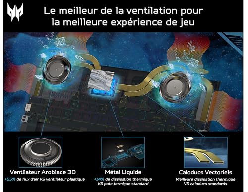 CICHY CHŁODZENIE: Laptop do gier z dwoma systemami wentylacji Aeroblade 3D piątej generacji i optymalizacją przepływu powietrza VortexFlow