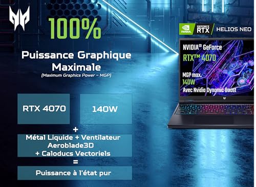 GAMING D’ÉLITE: Zdominuj grę dzięki laptopowi gamingowemu Predator Helios wyposażonemu w procesor Intel Core i9-14900HX zapewniający dziesięciokrotnie większą wydajność w grach, kartę graficzną NVIDIA GeForce RTX 4070, 32 GB pamięci RAM DDR5 i dysk SSD PCIe NVMe o pojemności 1 TB.