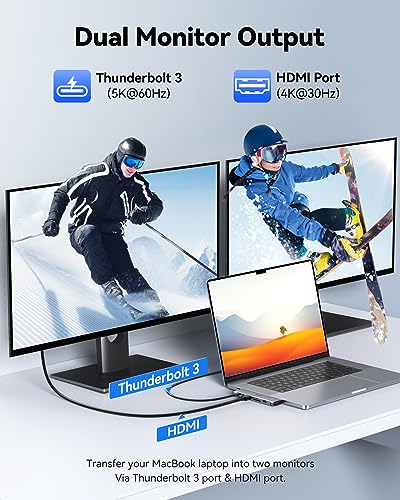 ✔【Adapter HDMI MacBook Air dual Monitor】Elastyczność pozwalająca korzystać z trybu lustrzanego lub trybu rozszerzenia na 2 monitorach. Port HDMI obsługuje rozdzielczość 4K@30Hz, a port Thunderbolt 3 obsługuje 5K@60Hz. Możesz rozszerzyć lub powielić ekran UHD 4K przez port HDMI tego adaptera MacBooka, co jest bardziej praktyczne w codziennej pracy; Obsługa maksymalnej rozdzielczości 4K UHD @60Hz lub Full HD (1080P) przy 60Hz.