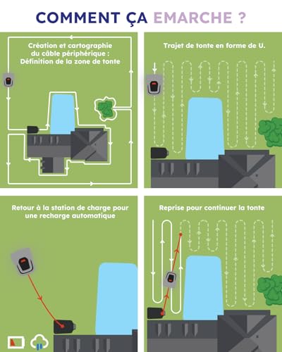 【Koszenie trawników o powierzchni do 1000 m²】Ten robot koszący jest również wyposażony w inteligentną aplikację i sterowanie Bluetooth,funkcją lokalnego koszenia, wodoodpornością IPX6 i zdolnością pokonywania wzniesień o nachyleniu do 45%. Kosiarka automatyczna jest łatwa w instalacji i czyszczeniu i może być używana do koszenia powierzchni do 1000 m².