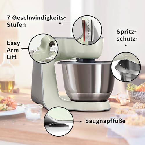 Bosch MUM58L20 Robot kuchenny – Mocna maszyna o mocy 1000 W do gotowania i pieczenia – 7 prędkości + turbo – Miska ze stali nierdzewnej o pojemności 3,9 l – Z akcesoriami – Kolor szary