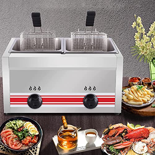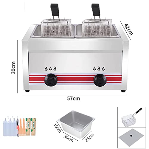 CGLYYDS Profesjonalna frytkownica gazowa LPG, komercyjna frytkownica ze stali nierdzewnej z koszami i pokrywami, do kuchni domowej, restauracyjnej…