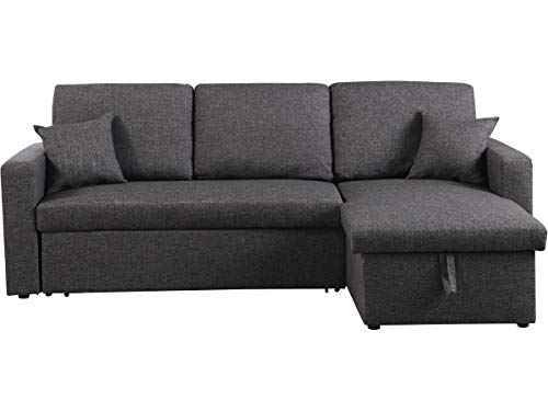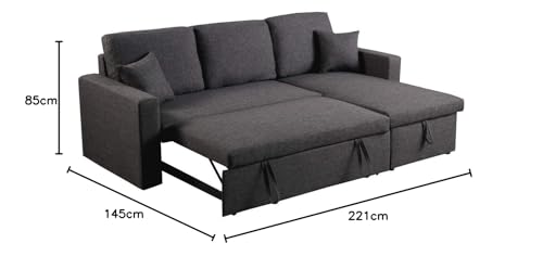 Dom i ogród – Narożnik rozkładany i odwracalny Alain 3-osobowy szary – Nowoczesna sofa rozkładana z tkaniny lnianej – Schowek (leżanka) – Design