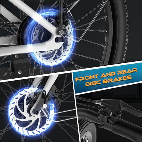 Wygodna i bezpieczna podróż: rower elektryczny jest wyposażony w tylny bagażnik, który zaspokoi Twoje potrzeby transportowe. Rower jest wyposażony w układ hamulcowy z podwójnymi tarczami, który zapewnia skuteczne hamowanie w każdej sytuacji. Reflektor i klakson sprawiają, że Twoje podróże są bezpieczniejsze