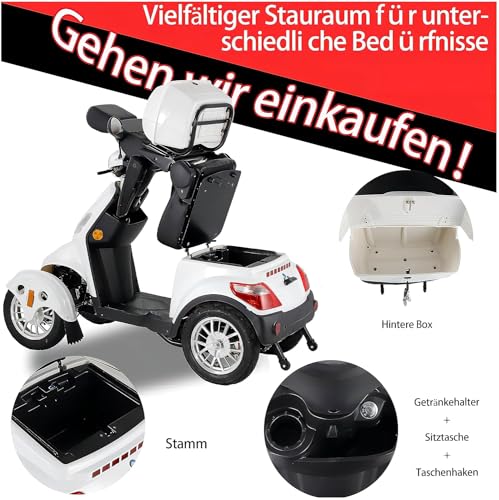 Elektryczny skuter z 4 kołami, 3 prędkościami, dużą przestrzenią bagażową, regulowaną głowicą i podłokietnikami oraz oparciem. Nadaje się do różnych terenów, wyposażony w reflektory, tylne światła i…