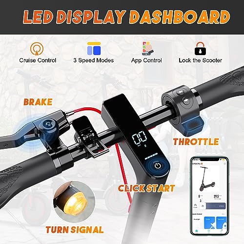 WYŚWIETLACZ LED: Hulajnoga EV10K PRO jest wyposażona w wyświetlacz LED o wysokiej rozdzielczości, na którym wyświetlany jest aktualny tryb, aktualna prędkość, tempomat, Bluetooth i stan reflektora. Ponadto jest bardzo łatwy w obsłudze dzięki jednemu przyciskowi zasilania, który umożliwia wykonywanie wszystkich czynności związanych z jazdą.