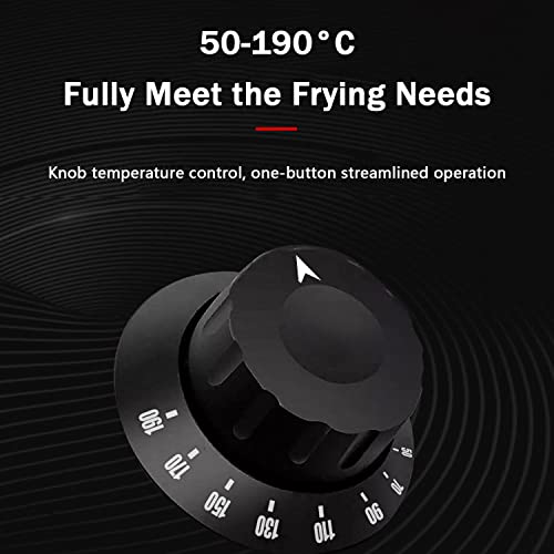 REGULOWANA TEMPERATURA: Automatyczna regulacja temperatury w zakresie od 50 do 190°C za pomocą pokrętła zapewnia optymalne i chrupiące rezultaty. Wysokoczuły termostat reguluje temperaturę oleju w zbiorniku, utrzymując ją na stałym poziomie, aby uzyskać optymalne wyniki smażenia. W przypadku przegrzania oleju lub wyjęcia głowicy grzejnej bezpiecznik automatycznie się wyłączy.