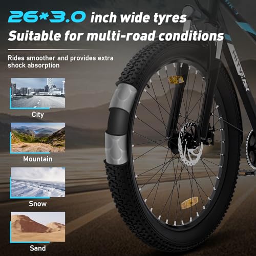 HITWAY Rower elektryczny, 26*3,0 cala Ebike 250 W Silnik elektryczny, rower górski Wyjmowana bateria litowa 48 V/15 Ah, 7 biegów Rower miejski Rower holenderski dla kobiet Rower dla dorosłych…