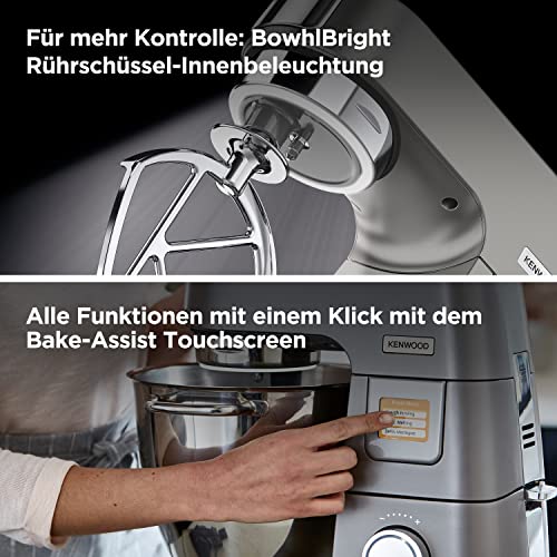 Kenwood Titanium Chef Patissier XL KWL90.034SI, robot cukierniczy z wbudowaną wagą, trzepaczką K, mieszadłem, trzepaczką, dwoma miskami, pokrywą przeciwbryzgową, mocnością 1400 W, stalową obudową…