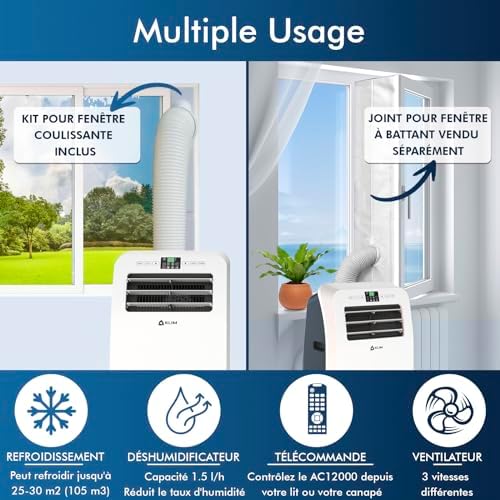 ✅ ŁATWA INSTALACJA – Ten przenośny klimatyzator jest dostarczany ze specjalną uszczelką okienną przeznaczoną do okien przesuwnych (poziomych lub pionowych). Wszystkie etapy montażu są jasno opisane i zilustrowane w naszej instrukcji obsługi, aby instalacja była jak najprostsza. * Jeśli jednak masz okna skrzydłowe, zalecamy najpierw zakup naszej uszczelki okiennej KLIM AC dostępnej na Amazon.