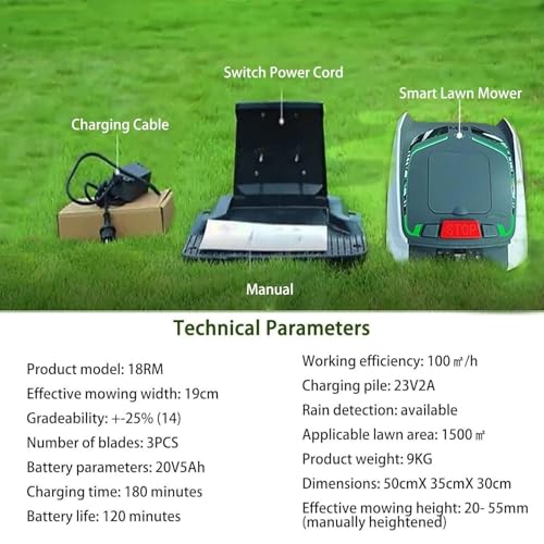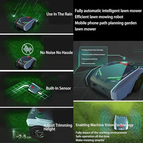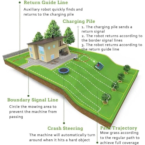 【WIELOFUNKCYJNOŚĆ】 Kosiarka automatyczna steruje kołami za pomocą wbudowanego inteligentnego oprogramowania, takiego jak jazda do przodu, do tyłu, skręt w lewo, skręt w prawo i inne podstawowe operacje, które mogą być automatycznie dostosowywane do różnych metod koszenia.