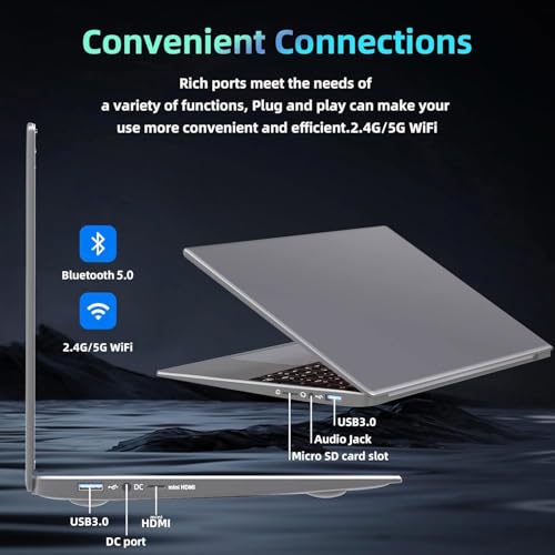 【Wielofunkcyjny laptop】Ten niedrogi komputer jest wyposażony w wysokiej jakości głośniki stereo, które zapewniają bardziej wciągające wrażenia dźwiękowe. Laptop jest wyposażony w 2 porty USB 3.0, mikrofon,kamery, złącza Mini-HDMI, portu CC do szybkiego ładowania, gniazda słuchawkowego 3,5 mm oraz gniazda kart TF. Oferujemy bezpłatne membrany klawiatury w językach włoskim, francuskim, hiszpańskim i niemieckim.