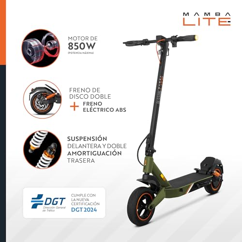 OLSSON Elektryczna hulajnoga dla dorosłych Mamba Lite – silnik 850 W 48 V maksymalna moc – akumulator 10000 mAh – Zasięg do 35 km – Światła LED – Koła bezdętkowe 10” –