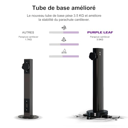 Parasol PURPLE LEAF jest wentylowany i zapewnia dobrą ochronę przed słońcem, oferując chłodne i wygodne miejsce w cieniu. Spełnia wiele potrzeb, takich jak posiłki na świeżym powietrzu, imprezy, pikniki i inne zajęcia.