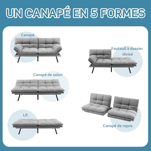RELAX4LIFE Rozkładana sofa 5 w 1 z 3-stopniową regulacją oparcia | 4-stopniowa regulacja podłokietników | Metalowe nóżki, nowoczesna sofa z dzielonym oparciem z pianki…