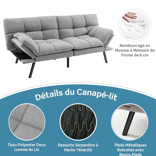 ★ZACHOWAJ KOMFORT★Pokryta miękką tkaniną poliestrową przypominającą len, sofa futon jest bardzo delikatna dla skóry i oddychająca. Wyściełane oparcie i siedzisko wypełnione są pianką z pamięcią kształtu o grubości 6,5 cm, która zapewnia wyjątkowy komfort. Luksusowa przyjemność czeka na Ciebie właśnie tutaj!