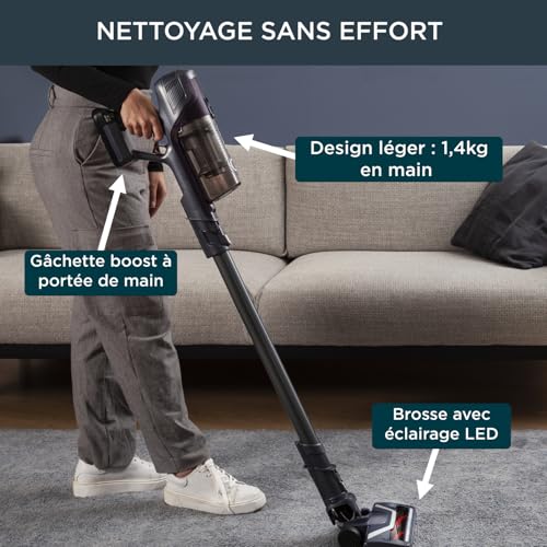 BEZ WYSIŁKU: zoptymalizowana technologia w smukłej i lekkiej konstrukcji (waga odkurzacza: 1,4 kg), umożliwiająca bezprzewodowe sprzątanie i całkowity komfort użytkowania