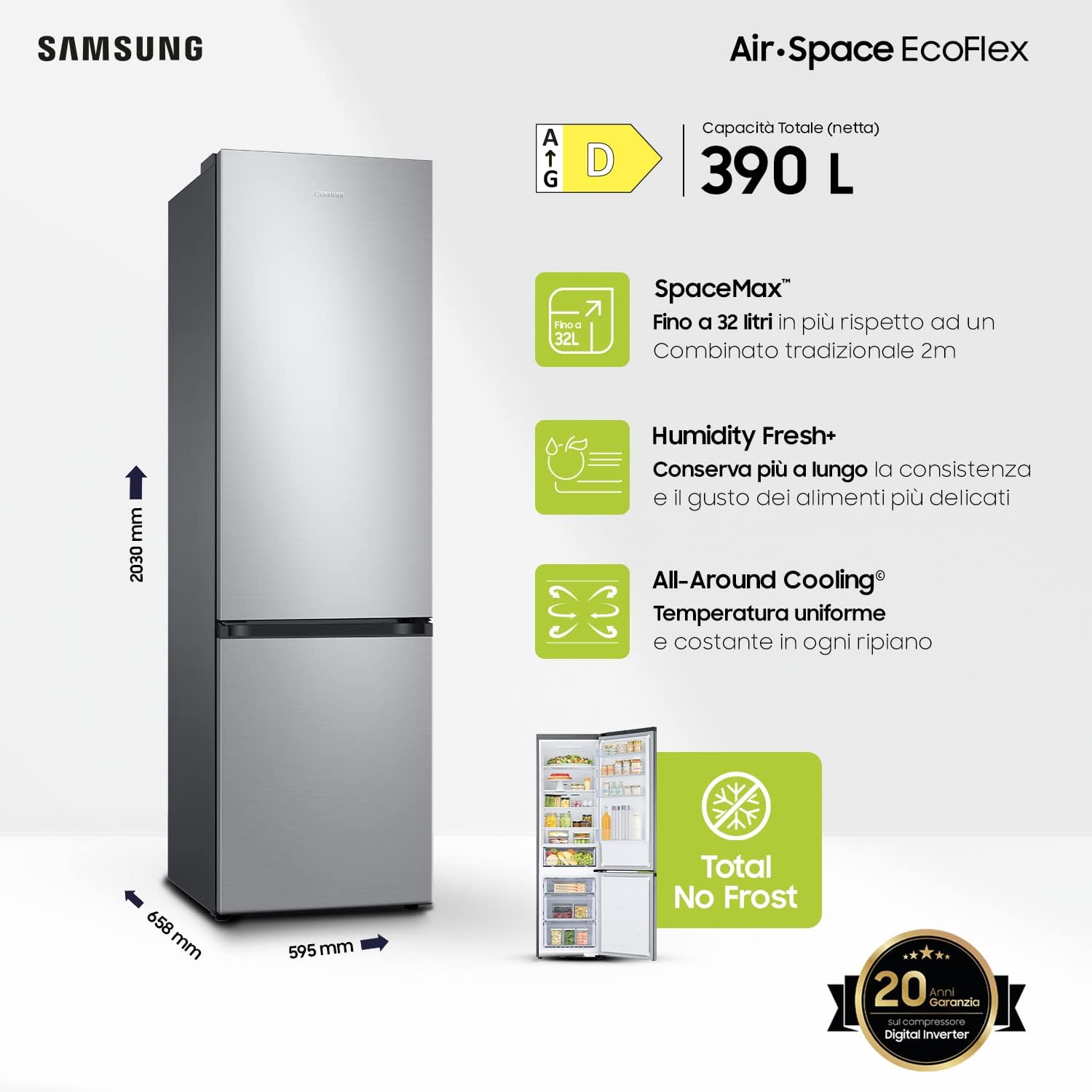 Dzięki technologii Space Max specjalna powłoka ścianek izolacyjnych pozwala zwiększyć pojemność wewnętrzną przy tych samych wymiarach zewnętrznych, zapewniając więcej miejsca do przechowywania żywności.