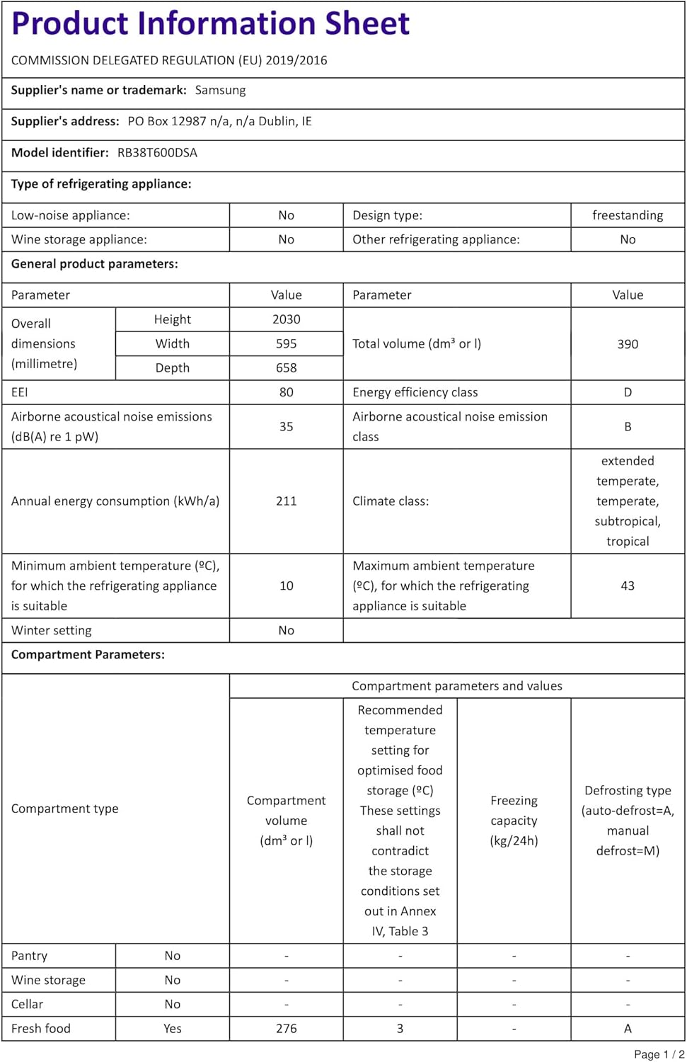 Samsung Sprzęt AGD RB38T600DSA / EF Lodówka z zamrażarką RB7300T, 385 l, srebrna stal nierdzewna