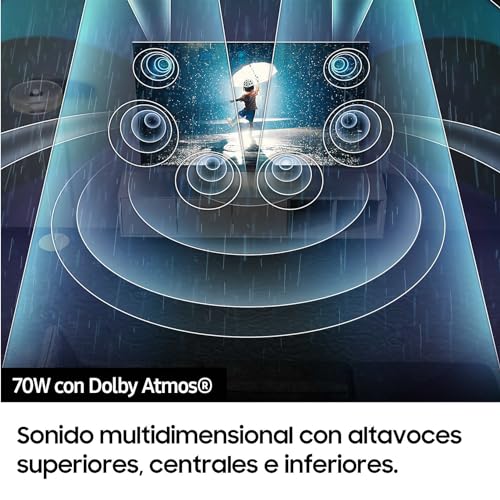 70 W z Dolby Atmos: ciesz się wrażeniami jak w kinie domowym. Wielowymiarowy dźwięk tworzony przez głośniki górne, środkowe i dolne wypełni Twój salon jak nigdy dotąd.