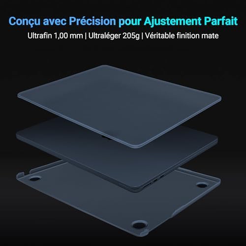 𝗠𝗔𝗧 𝗙𝗜𝗡, 𝗔𝗡𝗧𝗜-𝗧𝗥𝗔𝗖𝗘𝗦 𝗗𝗘 𝗗𝗢𝗜𝗚𝗧𝗦 Wykonane z wysokiej jakości poliwęglanu (znanego również jako tworzywo PC, odporne na uderzenia i o wysokiej wytrzymałości). Niezwykle lekki (205 g) i cienki (1 mm). Cienka matowa tekstura na niepowlekanej powierzchni przywraca wrażenie gołego urządzenia, skutecznie redukuje odciski palców i zapewnia pełną ochronę przed brudem, kurzem i zarysowaniami dla MacBooka Air 13,6 cala.