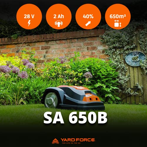 Yard Force – kosiarka automatyczna SA650B z czujnikami przeszkód i podnoszenia do trawników o powierzchni do 650 m² Pomarańczowa