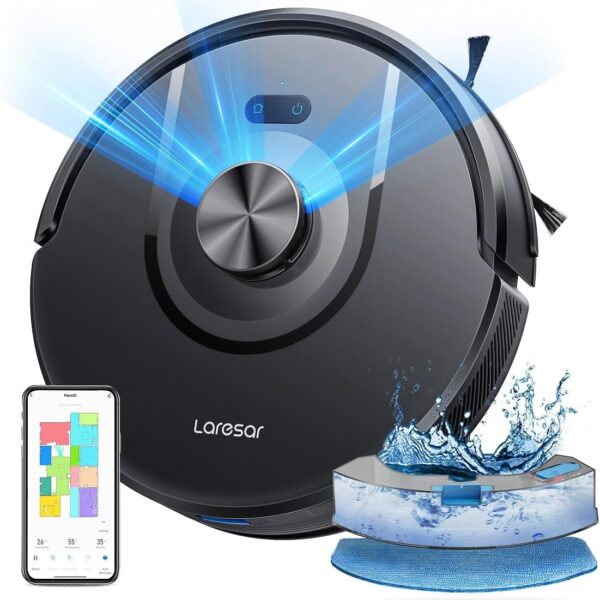 Laresar Mars01 Odkurzacz robotyczny z funkcją mycia, nawigacja Lidar 360°, odkurzacz robotyczny z funkcją mycia 5000Pa, 5 edytowalnych map, odpowiedni do sierści zwierząt, dywanów i podłóg,App/Alexa/Google Home