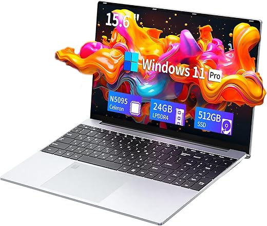 Laptop z 24 GB pamięci RAM i dyskiem SSD o pojemności 512 GB, laptop z czterordzeniowym procesorem Celeron N5095, komputer z systemem Windows 11, laptop 1920 * 1080 IPS FHD, WiFi 5G i USB 3.0 i…